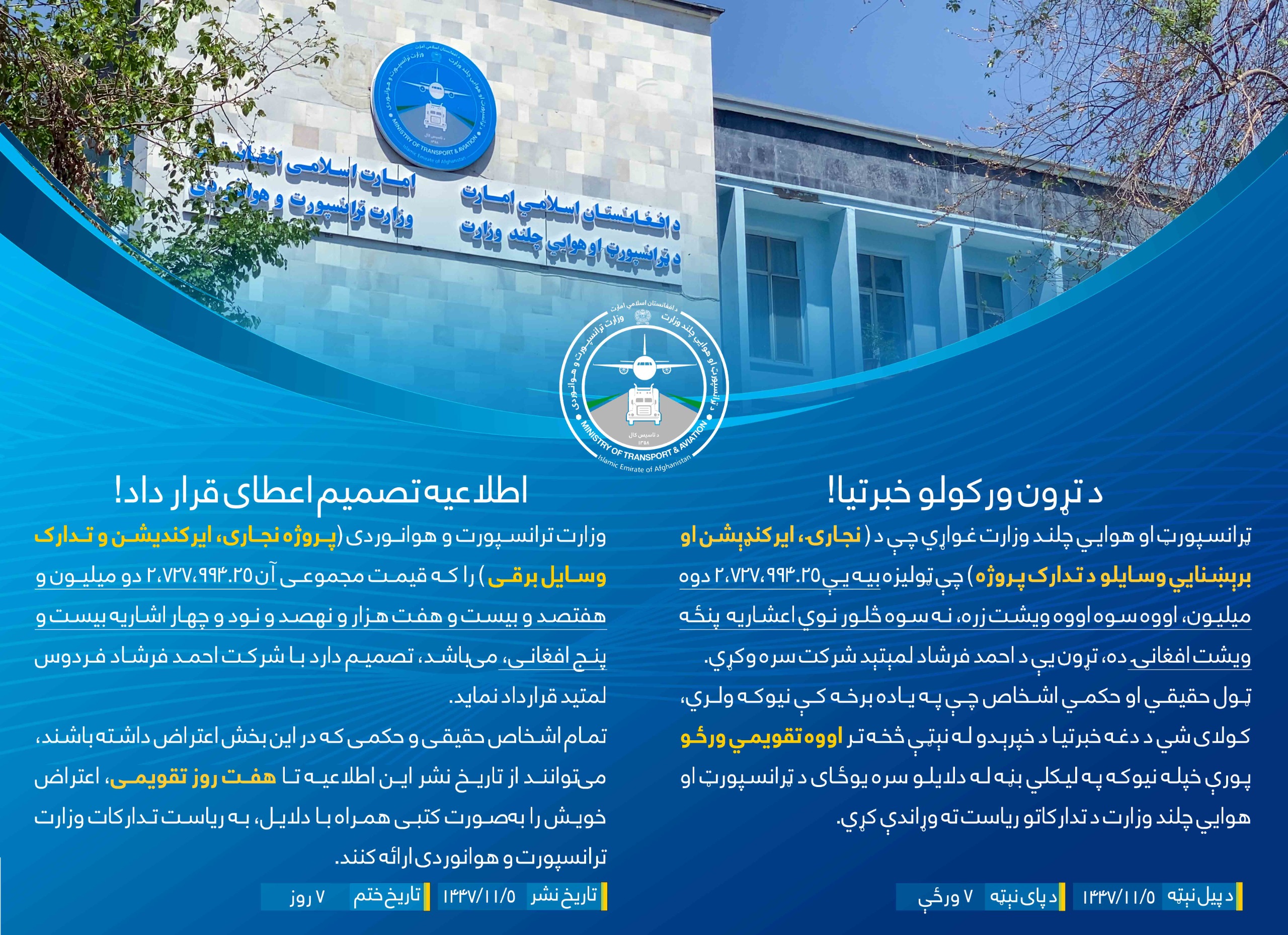 د اعتبار موده د ۱۴۰۵ کال د غويي ۲ نېټې پورې