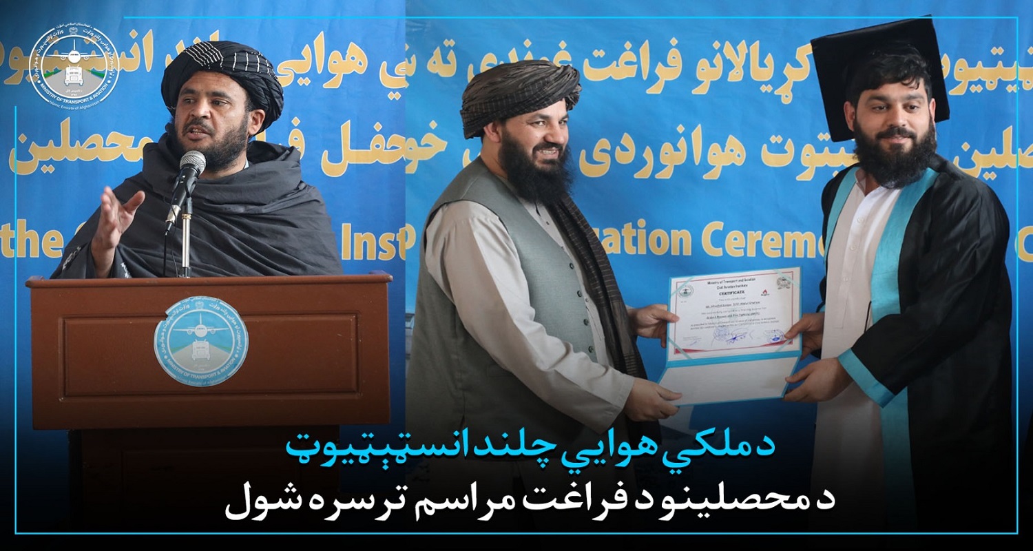 د ټرانسپورټ او هوايي چلند وزارت اړوند ملکي هوايي چلند انسټېټیوټ د محصلینو فراغت غونډه ترسره شوه. روان کال کې د یاد انسټېټیوټ بېلابېلو څانګو کې له دوو کلنو زده کړو ترلاسه کولو وروسته ۱۰۸ کسان فارغ شول. ملکي هوايي چلند انسټېټیوټ کې دا مهال د هوايي ټرافیک کنټرول، هوايي چلند تکنالوژۍ، ځمکني ټرانسپورټ، هوايي چلند مدېر یت او اطفايې څانګو کې سلګونه زده کړیالان په زده کړو بوخت دي.