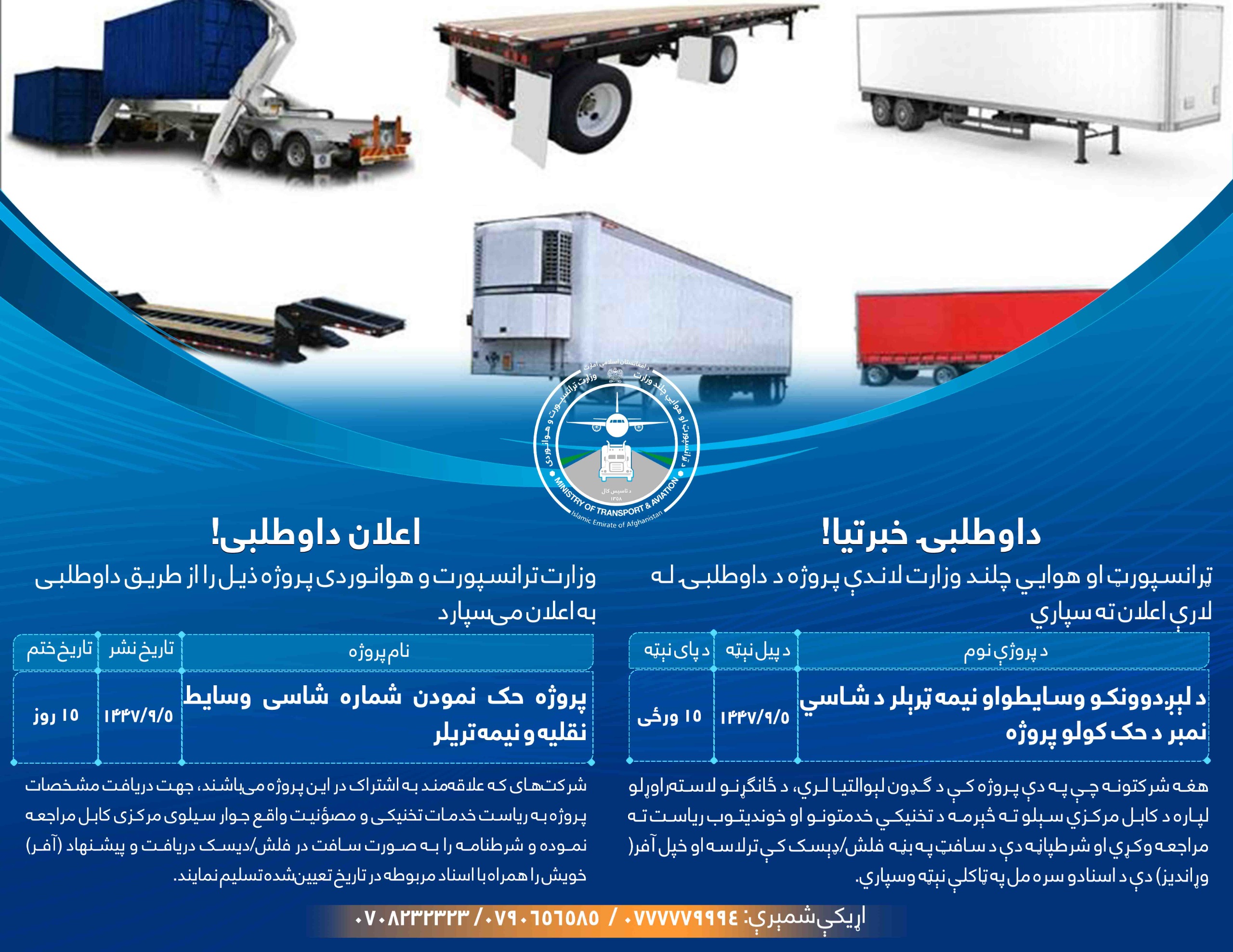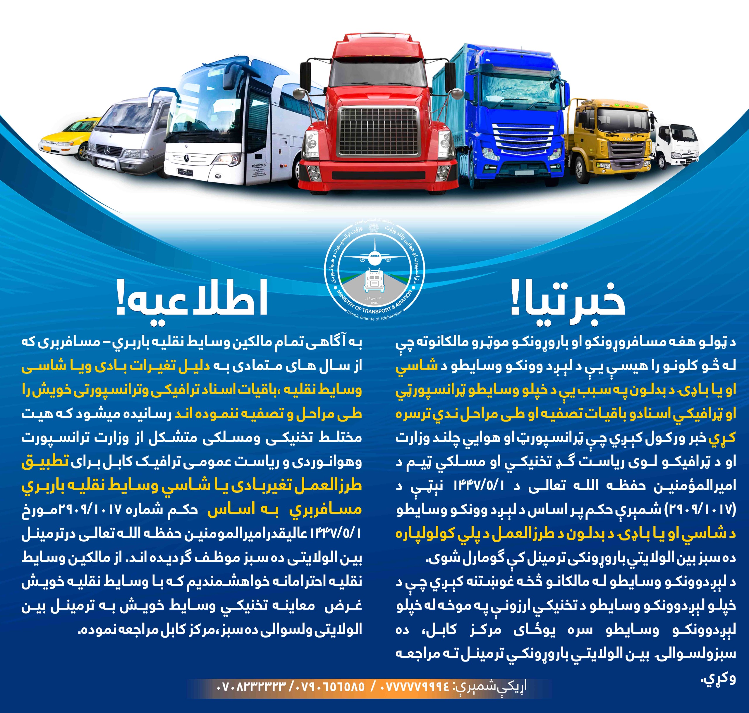 تآکید وزارت ترانسپورت و هوانوردی بر ایجاد و توسعه زیرساخت معیاری ترانسپورت که نقش اساسی را در تسهیل حمل ونقل، رشد اقتصادی و اتصال بهتر مناطق مختلف کشور ایفا مینماید، میباشد