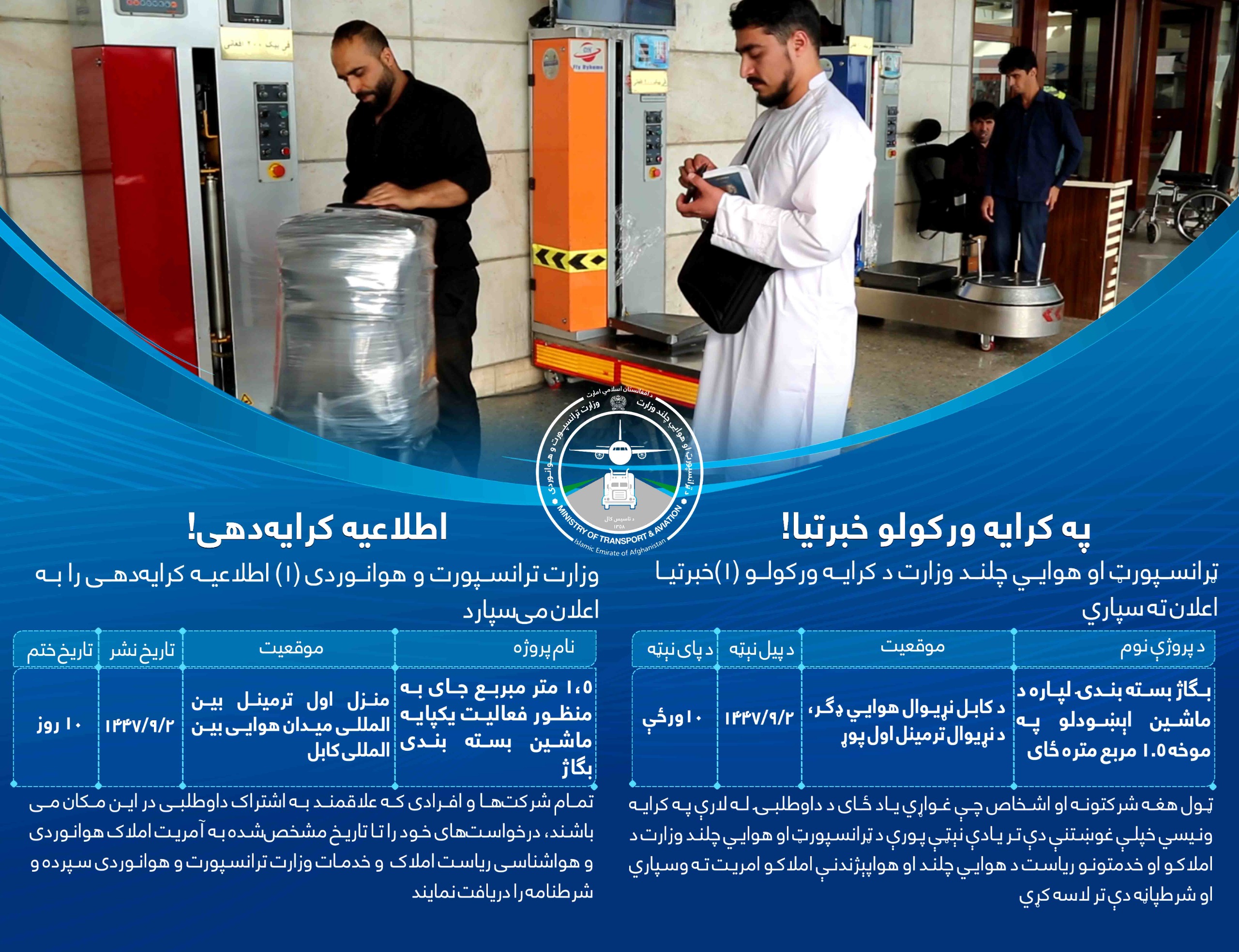 وزارت ترانسپورت و هوانوردی به منظور توسعه زیربناهای ترانسپورتی و معیاری سازی خدمات در این بخش، روند انتقال ۳۰ هزار جریب زمین را به این وزارت انتقال نموده است.