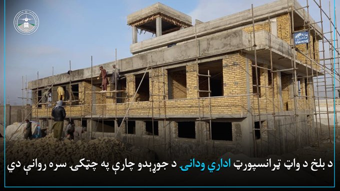 د ټرانسپورټ او هوایي چلند وزارت لخوا د بلخ ولایت د واټ ټرانسپورټ تنظیم ریاست اداري ودانۍ د نهه ميلیونه افغانیو په لګښت سره جوړېږي، چې کارونه یې په چټکۍ سره روان دي. د يادولو وړ ده، چې د يادې ودانۍ چارې دوه نیمې میاشتې وړاندې پيل شوې چې د ۱۵ اداري خونو په درلودلو سره په دریو پوړونو کې جوړېږي.