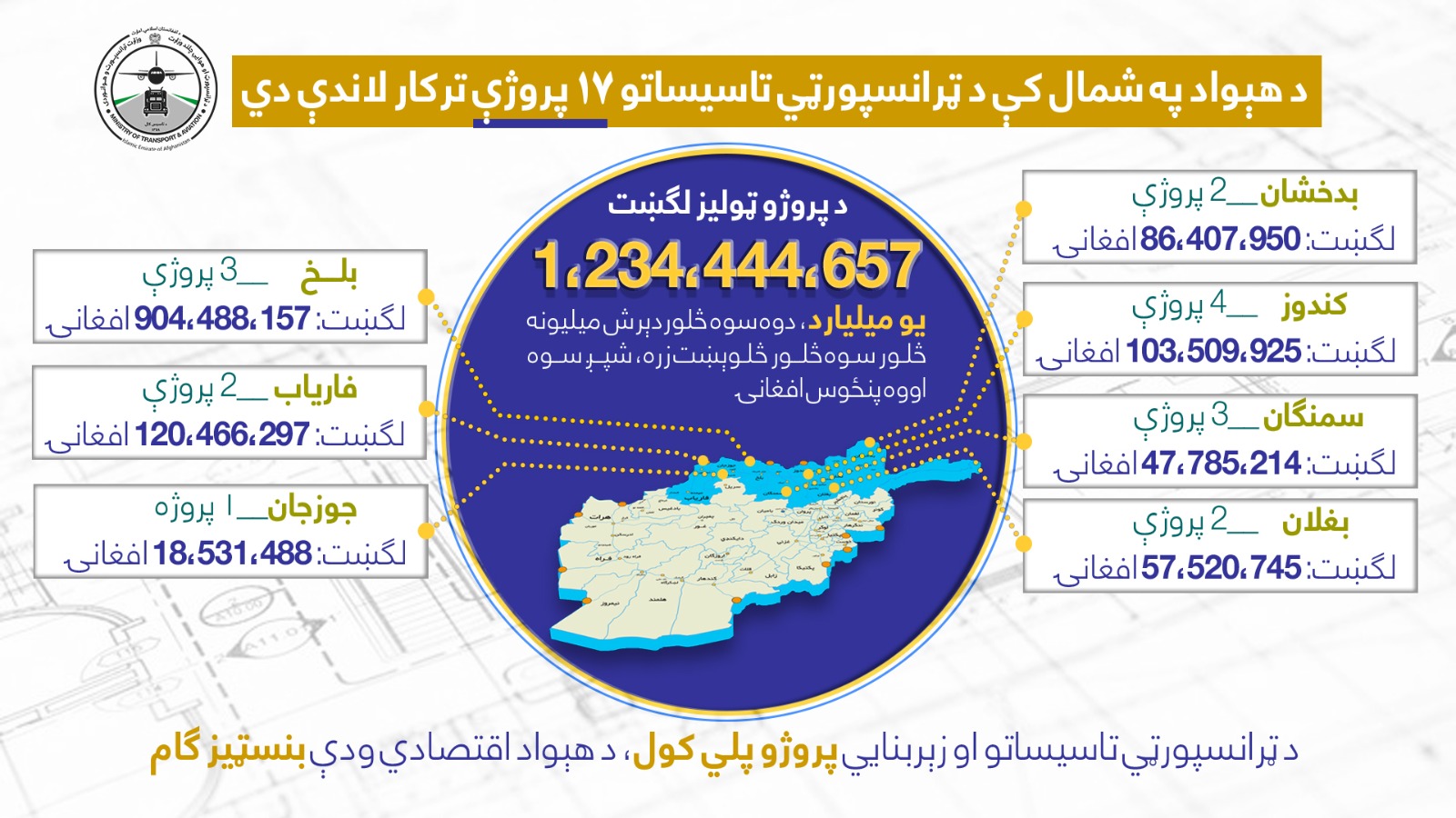 در هفت ولایت شمال کشور، ۱۷ پروژه تاسیساتی در حال تطبیق شدن است. معلومات