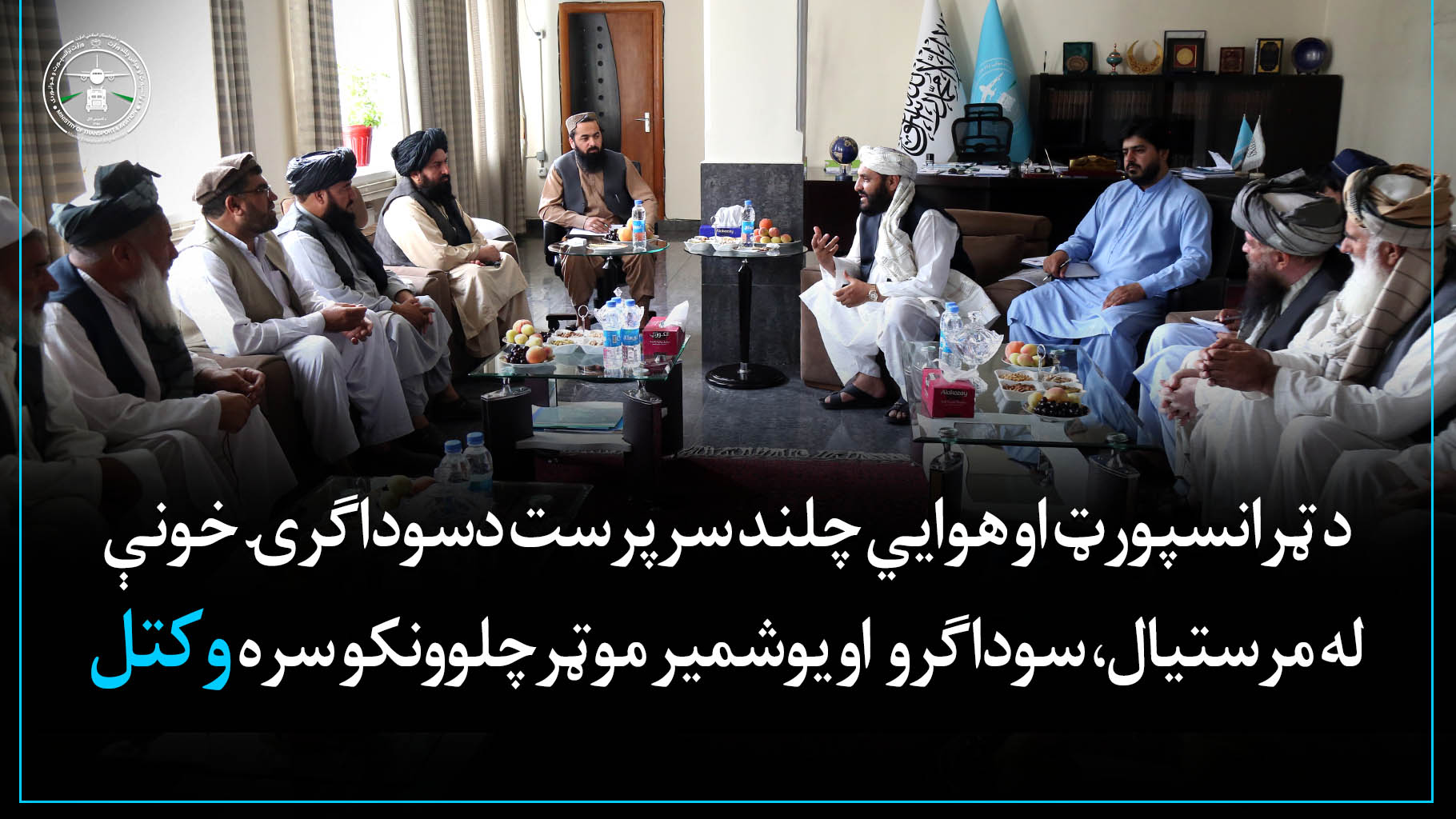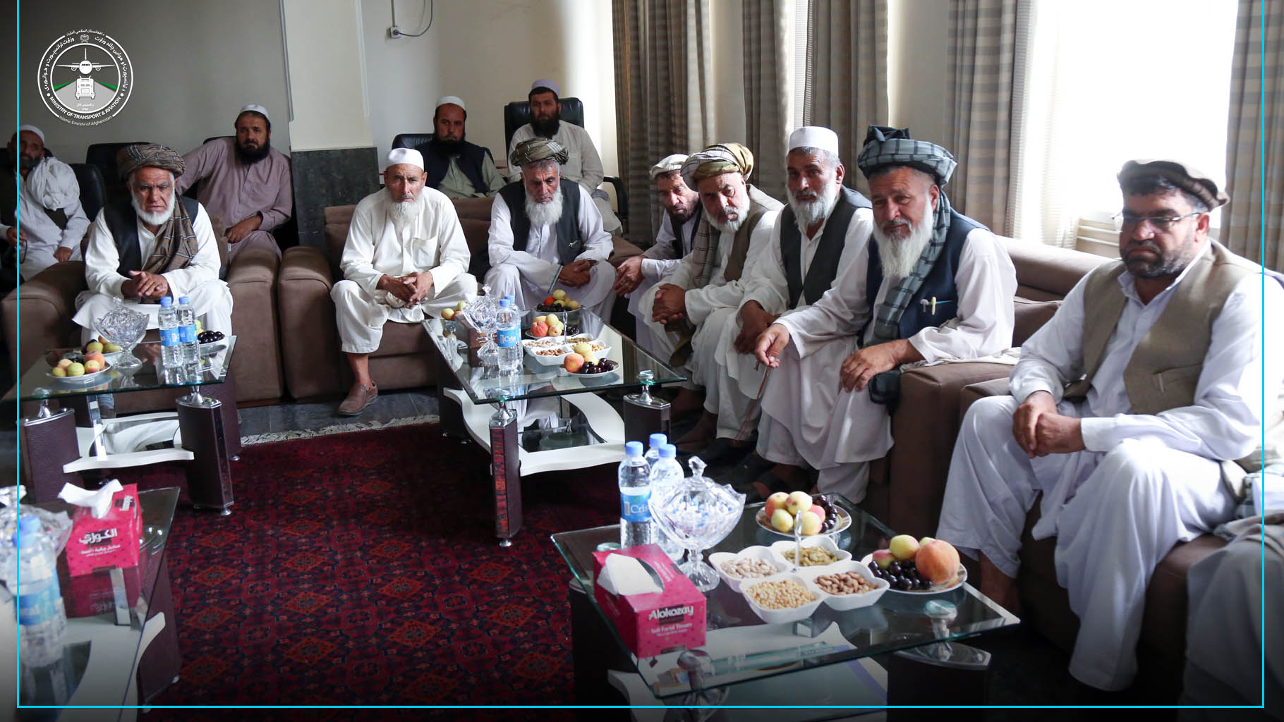 په دې لیدنه کې د ټرانسپورټ او هوايي چلند سرپرست الحاج ملا حميدالله اخندزاده د یادو کسانو سره په خپل کاري دفتر کې په ټرانسپورټي او سوداګريزو مسائلو او د ولايتونو تر منځ د بار وړونکو موټرو د نوبت پر جوړیدونکي طرزالعمل خبرې وکړې او ددوی وړانديزونه یې واورېدل او په اړه یې لازمې پريکړې ونيول شوې.