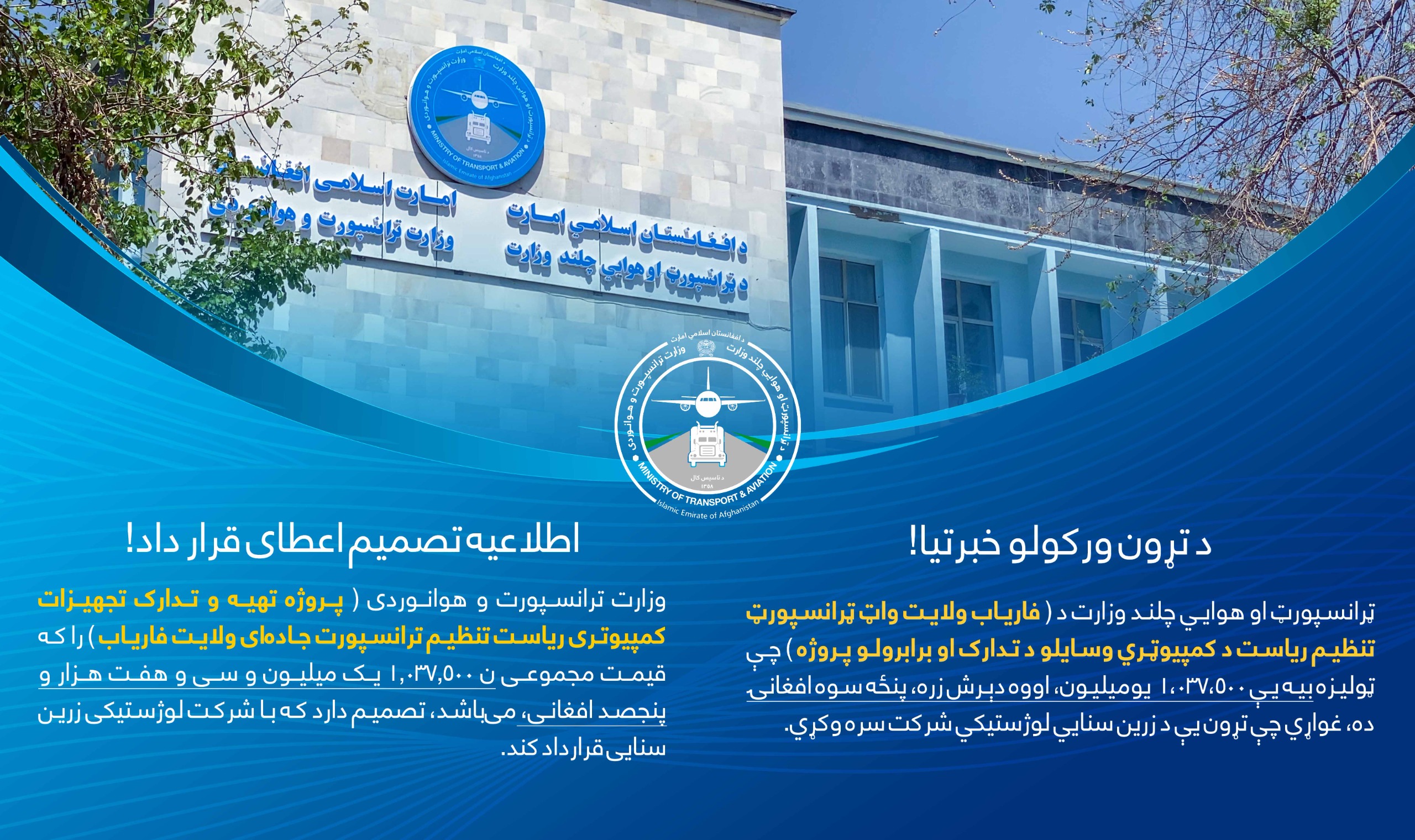 فاریاب ولایت واټ ټرانسپورټ تنظیم ریاست د کمپیوټري وسایلو د تدارک او برابرولو پروژه
