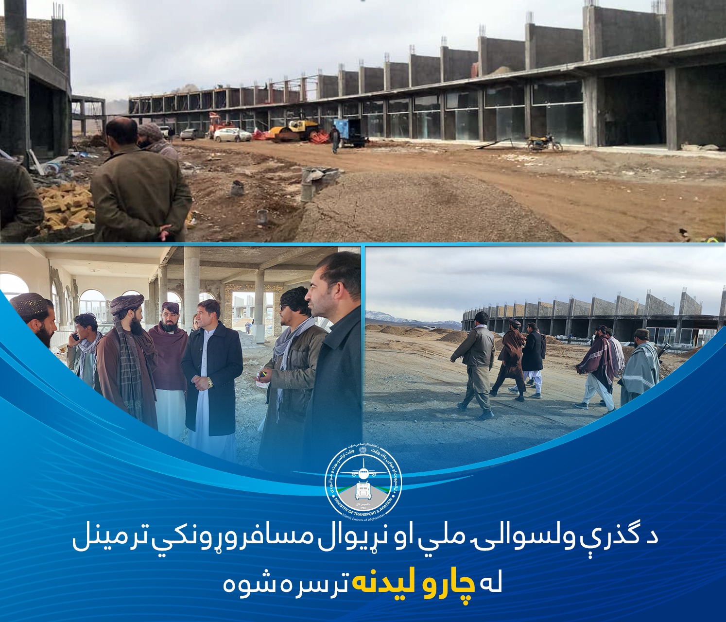 د ټرانسپورټ او هوايي چلند وزارت د پروژو مدیریت رئیس انجنیر بختیار اختیاري او ورسره مل تخنیکي ټیم د هرات ولایت ګذرې ولسوالۍ کې د ملي او نړیوال مسافروړونکي ترمینل د جوړېدو له روانو چارو لیدنه وکړه، د لیدنې پر مهال یاد ټیم د پروژې پلي کېدو بهیر، تخنیکي معیارونه د کار چټکتیا او کیفیت له نږدې وڅېړل او اړوند مسؤلینو ته یې د کار د لا ښه تنظیم، نړیوالو معیارونو رعایت او د ټاکل شوي مهالویش سره سم د پروژې بشپړېدو په اړه لازمې لارښوونې وکړې.